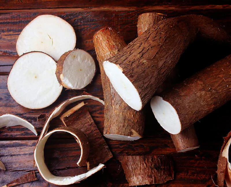 Staple root crop in the tropics, native to brazil and known for gluten-free versatility