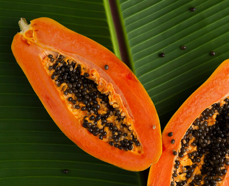 Tropical fruit with sweet, orange flesh, rich in vitamins and enzymes