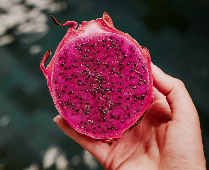 Exotic fruit with massive antioxidants, vibrant color and mild, sweet flavor, rich in vitamins