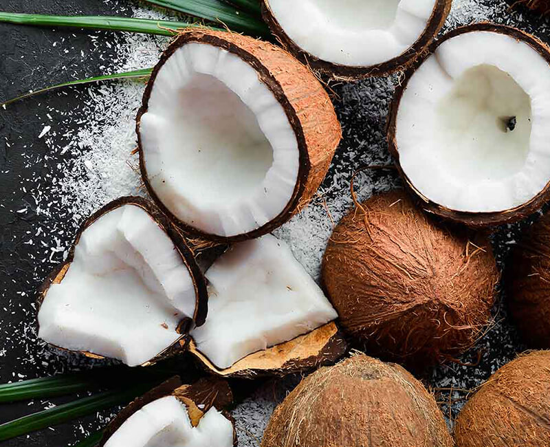 Versatile tropical fruit, offering hydrating water and healthy oils, plus nutrient-dense flesh